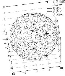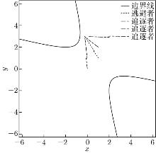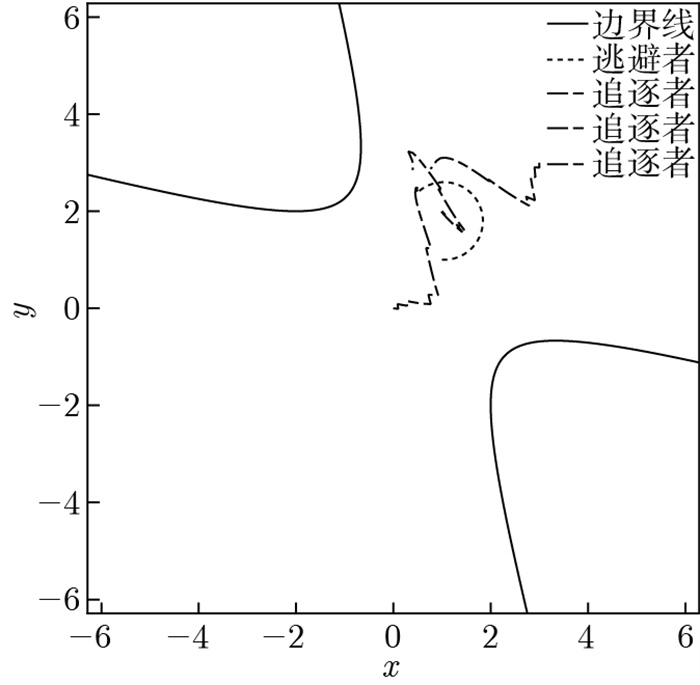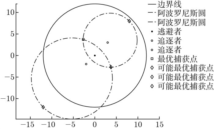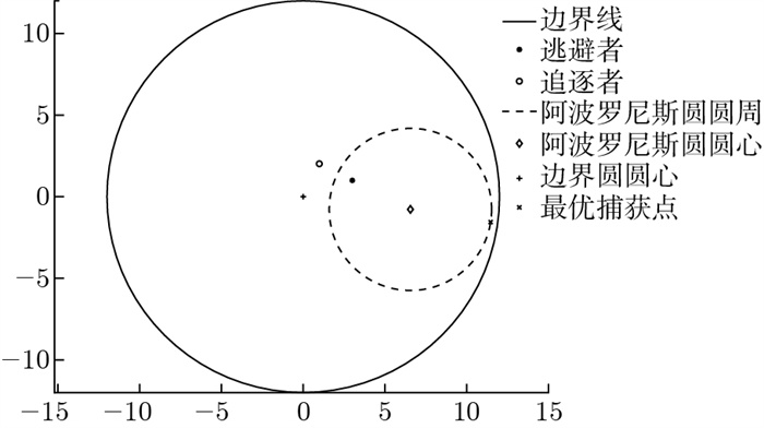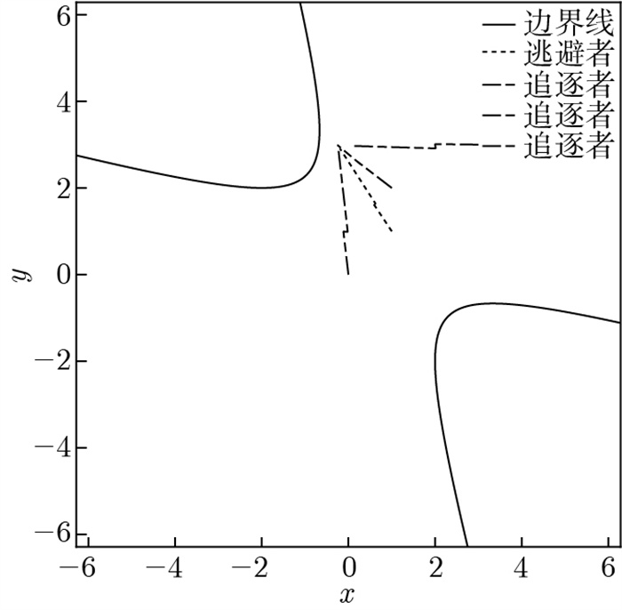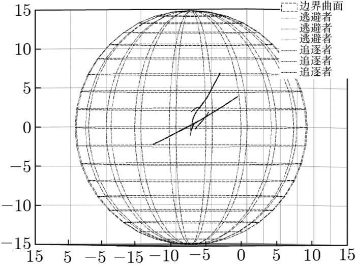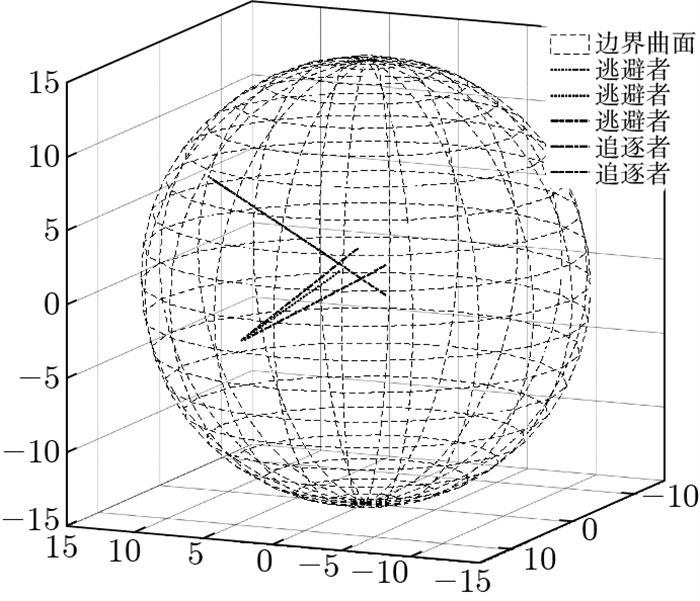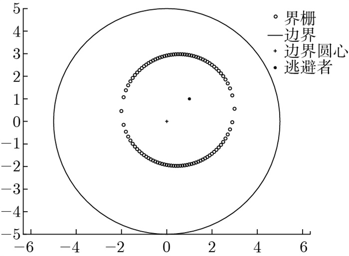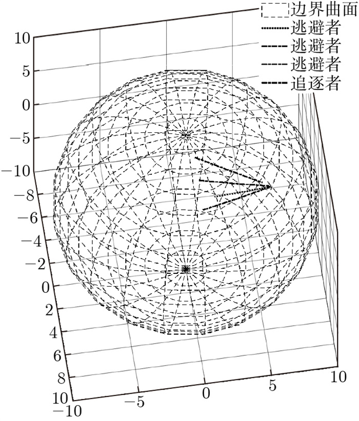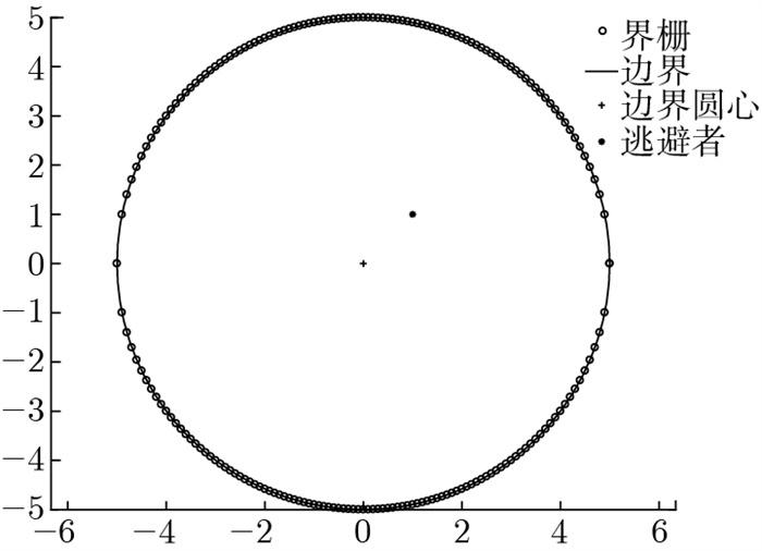 保护边界安全一直以来是一个热点问题, 边界线形状的复杂多变增加了边界防御问题研究的复杂性。本文通过对边界防御场景的刻画, 将问题转化为追逃微分博弈问题, 进而求解出此博弈中局中人的最优策略, 并给出切实可行的算法。本文运用简单运动刻画局中人的运动, 运用二次曲线的一般方程形式刻画边界形状, 定义支付函数为捕获点到边界的距离。通过几何方法对问题进行研究, 得到了圆形边界情形下更加简洁的值函数形式, 并构造出局中人的最优策略。在圆形边界的基础上, 进一步得到针对二次曲线边界情形下的通用算法。最后对模型进行从定量到定性、从二维到三维、从多追一到多追多的完善, 并通过数值仿真验证了结论与算法的正确性。
